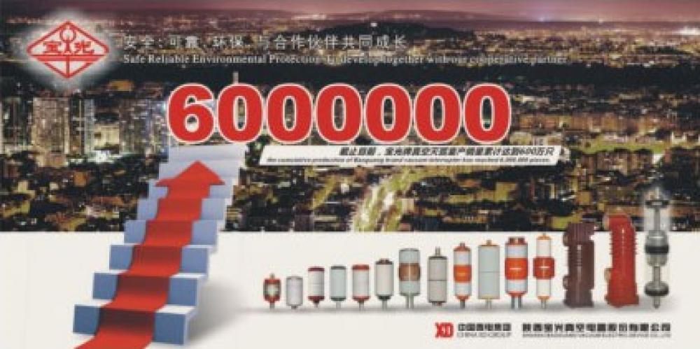 截止2014年,寶光牌真空滅弧室產(chǎn)銷量累計(jì)超過(guò)500萬(wàn)只,年生產(chǎn)能力超過(guò)60萬(wàn)只年出口真空滅弧室10萬(wàn)只。