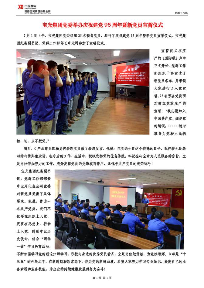 寶光集團(tuán)黨委舉辦慶祝建黨95周年暨新黨員宣誓儀式