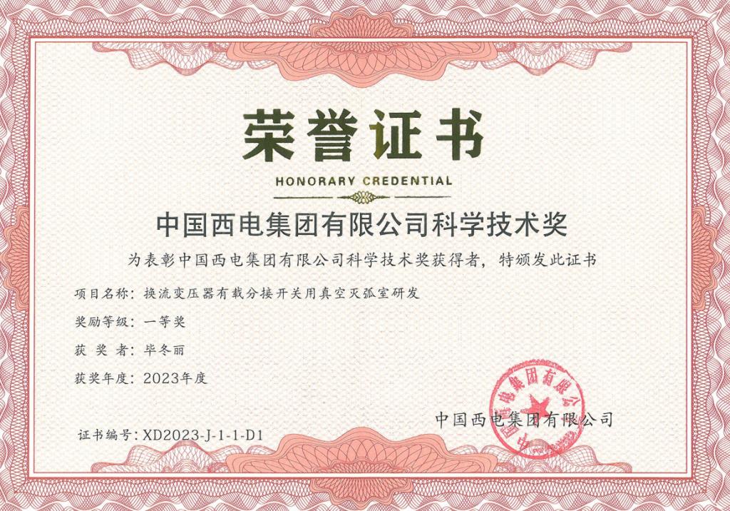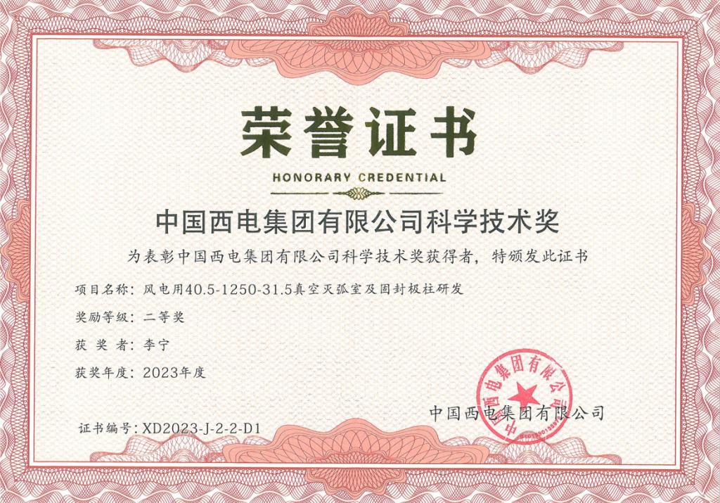 近日,寶光股份《換流變壓器有載分接開關(guān)用真空滅弧室研發(fā)》與《風(fēng)電用40.5 kV/1250 A-31.5 kA真空滅弧室及固封極柱研發(fā)》兩個技術(shù)創(chuàng)新項目,分別榮獲2023年度中國西電集團科學(xué)技術(shù)獎“一等獎”與“二等獎”!