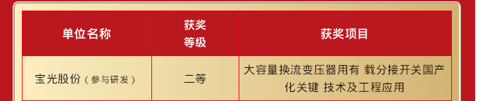 寶光股份獲各類獎(jiǎng)項(xiàng)共計(jì)2項(xiàng),參與科技進(jìn)步獎(jiǎng)二等獎(jiǎng)1項(xiàng)!獲得科技進(jìn)步獎(jiǎng)三等獎(jiǎng)1項(xiàng)!