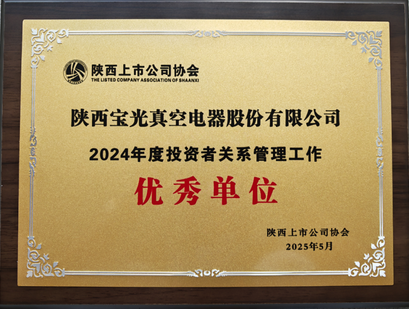 5月15日,陜西上市公司協(xié)會(huì)與陜西證券期貨業(yè)協(xié)會(huì)聯(lián)合發(fā)布2024年度評(píng)優(yōu)結(jié)果,寶光股份憑借在投資者關(guān)系管理領(lǐng)域的卓越實(shí)踐,榮獲“2024年度投資者關(guān)系管理工作優(yōu)秀單位”稱號(hào),這是對(duì)公司長(zhǎng)期以來(lái)重視投資者關(guān)系管理的高度認(rèn)可。