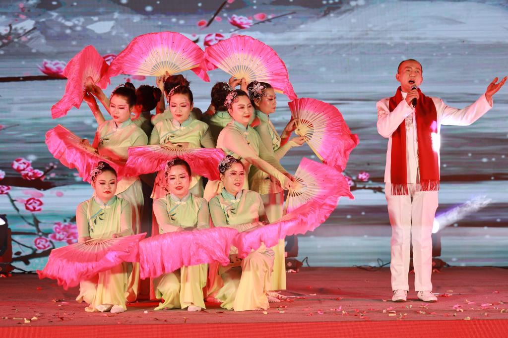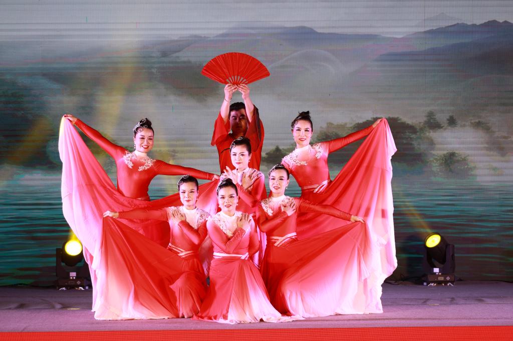 演出結(jié)束后,在場各位領(lǐng)導(dǎo)走上舞臺,與演出人員合影留念,同慶兔年新春。