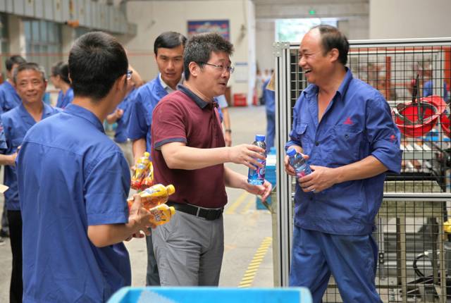 在生產(chǎn)一線,領(lǐng)導(dǎo)們?yōu)橐痪€員工遞上一瓶瓶清涼飲料,并關(guān)切的說(shuō):“你們辛苦了,注意安全”。一瓶瓶飲料,一句句暖心的話,體現(xiàn)著公司黨政工對(duì)員工的關(guān)愛,同時(shí)也激發(fā)了員工戰(zhàn)高溫、促生產(chǎn)、保訂單信心和決心。
