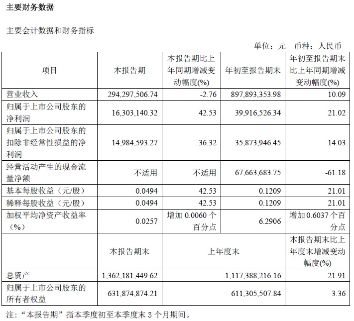 寶光股份2022年三季度主要會計數(shù)據(jù)和財務(wù)指標