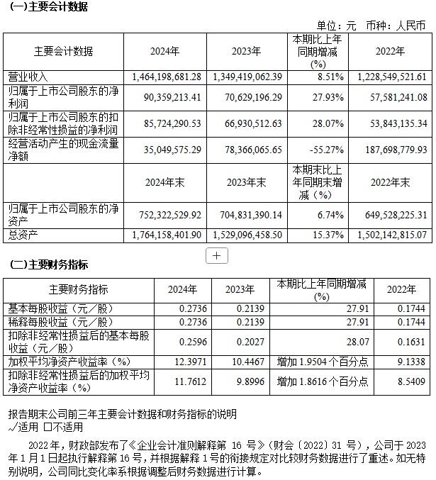 寶光股份2024年度主要會計數(shù)據(jù)和財務指標